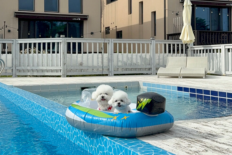 반려견 전용 야외 수영장이에요
