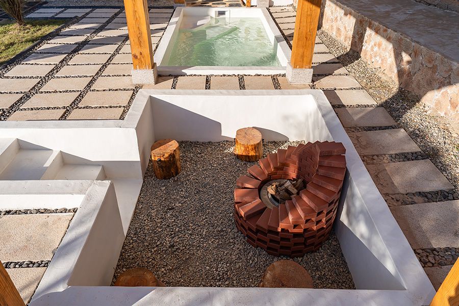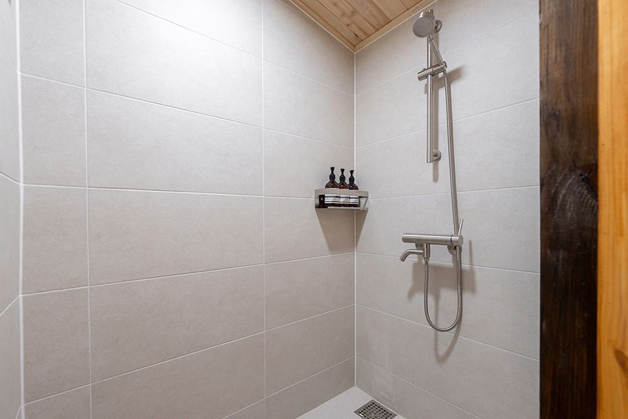침대룸(킹사이즈) 1개 + 거실 + 부엌 + 화장실1개 + 자쿠지 + 바비큐장 + 불멍화로